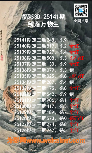 上一篇:福彩3D25141期龙虎斗胆码 杀码图