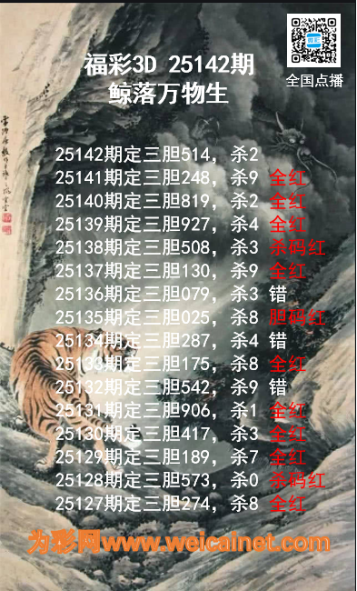 上一篇:福彩3D25142期龙虎斗胆码 杀码图