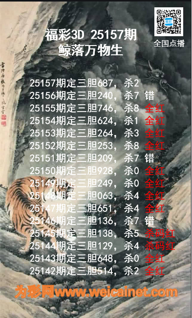 上一篇:福彩3D25157期龙虎斗胆码 杀码图