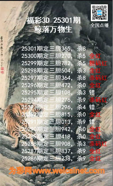 上一篇:福彩3D25301期龙虎斗胆码 杀码图