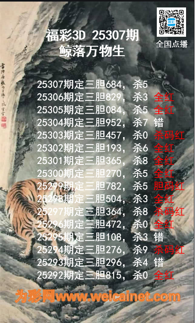 上一篇:福彩3D25307期龙虎斗胆码 杀码图