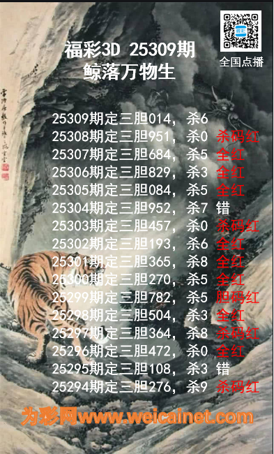 上一篇:福彩3D25309期龙虎斗胆码 杀码图