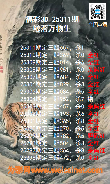 上一篇:福彩3D25311期龙虎斗胆码 杀码图