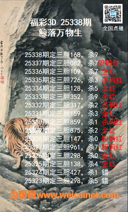 上一篇:福彩3D25338期龙虎斗胆码 杀码图