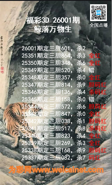上一篇:福彩3D26001期龙虎斗胆码 杀码图