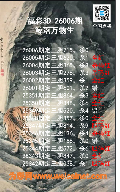 上一篇:福彩3D26006期龙虎斗胆码 杀码图