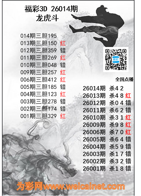 上一篇:福彩3D26013期龙虎斗胆码 杀码图