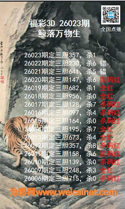 上一篇:福彩3D26023期龙虎斗胆码 杀码图