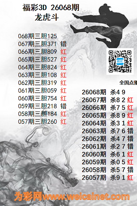 下一篇:福彩3D26068期龙虎斗胆码 杀码图