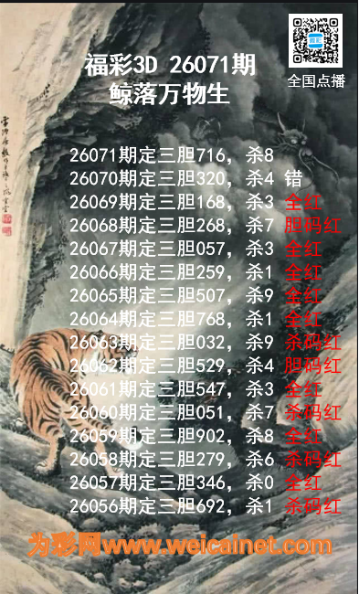 上一篇:福彩3D26071期龙虎斗胆码 杀码图